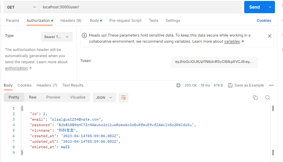 2. email과 password가 맞는지 검증한후 맞다면 access 토큰을 발급해 전달합니다