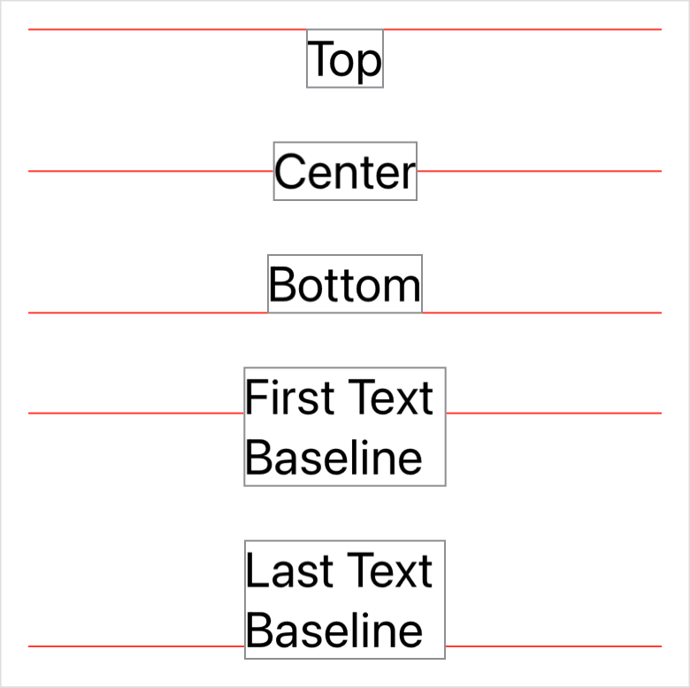 - .top: 하위 뷰를 컨테이너의 상단에 정렬합니다.
