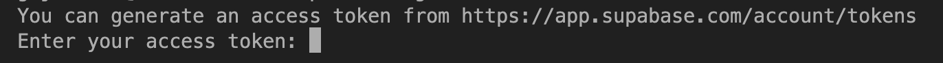 supabase login 로그인 명령어를 입력하면 아래 사진과 같이 토큰을 입력해달라고 뜹니다.