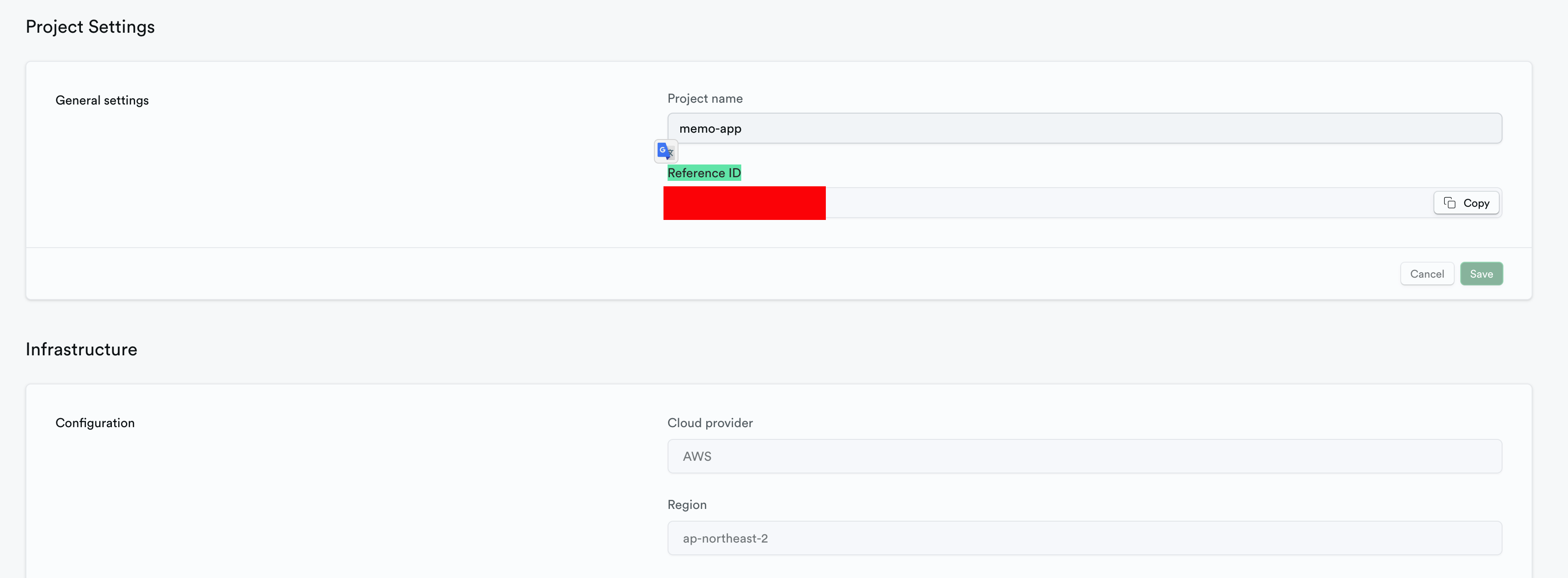 dashboard > 프로젝트 이름 > project settings 로 들어가 Reference ID를 입력해 주시기 바랍니다.