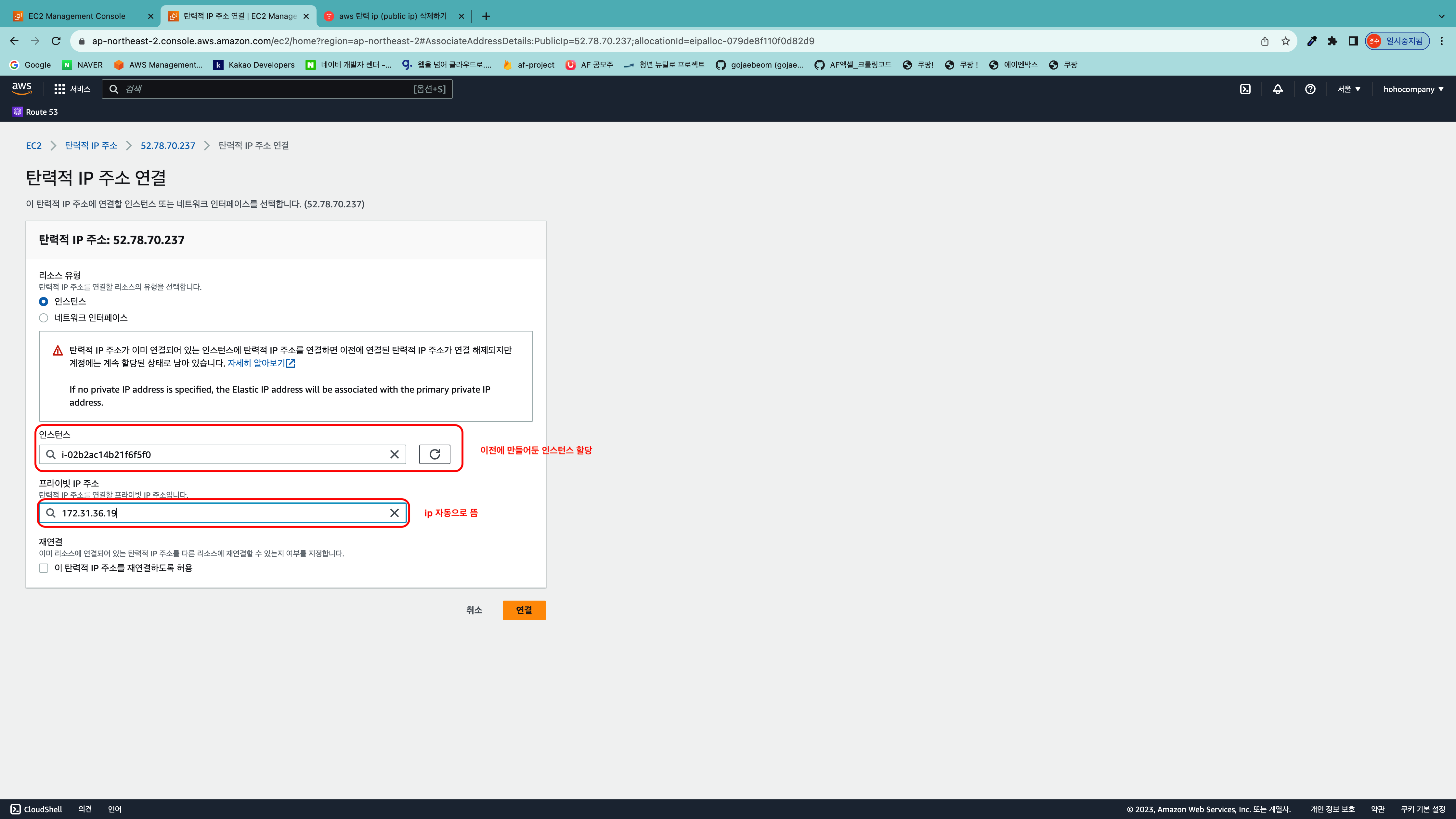 2. 인스턴스에 고정 IP 할당하기