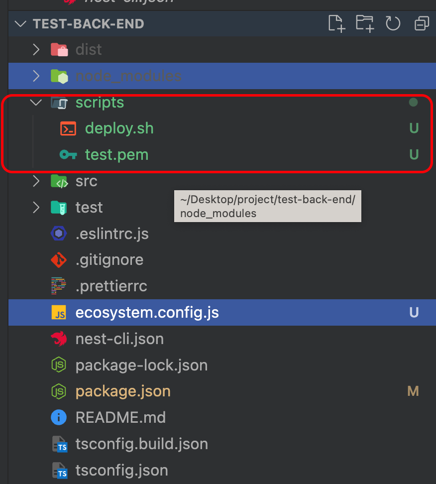 기존에 ssh로 접속해 Git clone 받고 build 하고 install하고 pm2 start 하는 과정이 매우 번거롭게 느껴졌을텐데요. 이와 같이 반복되는 작업을 자동화하는 것은 정말로 효율적이며 시간을 절약할 수 있는 방법입니다. 스크립트 작성을 통해 단 코드 한줄로 배포해봅시다 ! 1. 스크립트 파일 작성하기 프로젝트 하위 폴더에 scripts파일을 만들고 아래와 같이 deploy.sh를 만들고 앞서 발급받은 pem키도 같이 넣어주세요 deploy.sh 작성하기 #!/bin/bash PEM_PATH=./scripts/test.pem if [ ! -f $PEM_PATH ]; then echo "DEPLOY_FAIL: not file exist \"$PEM_PATH\"" exit 1; fi # 나중..